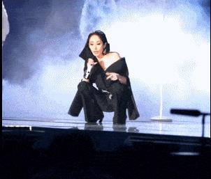 一方面,她的身体状态显然受到了脚伤的影响。在舞台上,她的动作显得笨拙,虽然偶尔有轻微的舞蹈动作,但总是感觉慢一拍,显得力不从心。尤其是当她蹲在舞台上与观众互动时,由于过于投入,她忘记了自己的脚伤问题。当她试图起身时,却发现无法站起,只好一手撑地,慢慢地艰难站起。这个过程甚至引发了她的脚上的阵痛,让她扶了一下小腿,微微咧嘴。