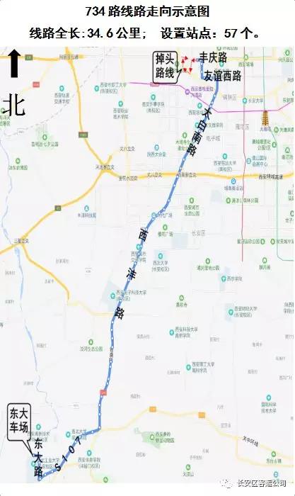 734路(西北工业大学长安校区——草阳村),该线路全长34.6公里,设置站点57个。配备30辆大型空调新型能源公共汽车。