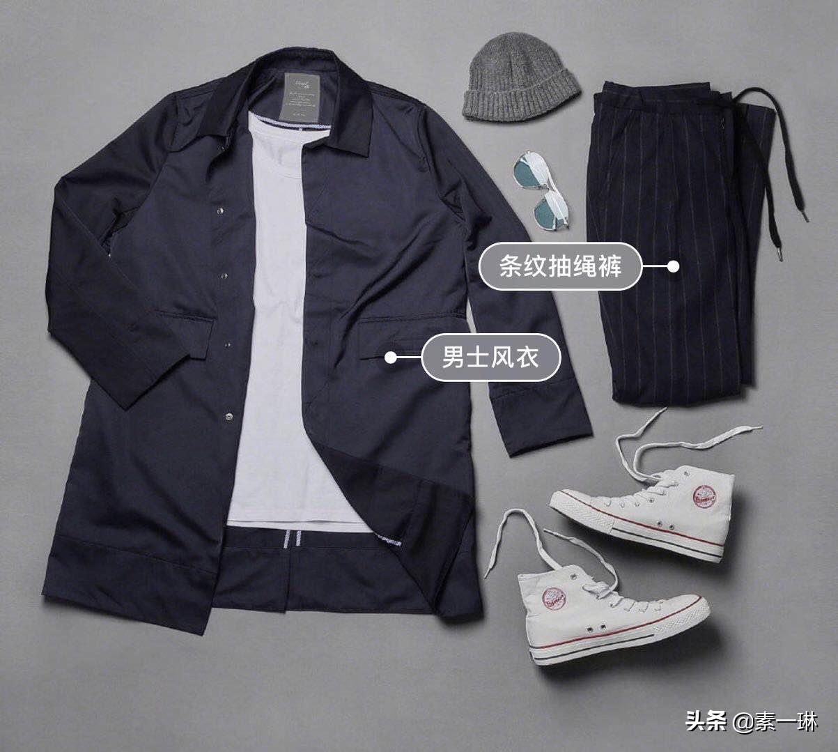 2.风衣外套+白T+抽绳裤