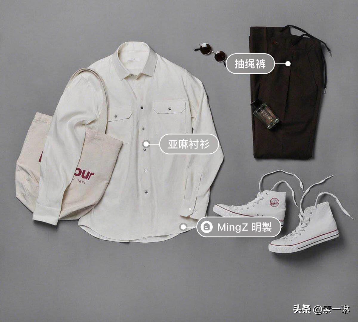 1.亚麻衬衫+商务休闲裤+帆布鞋