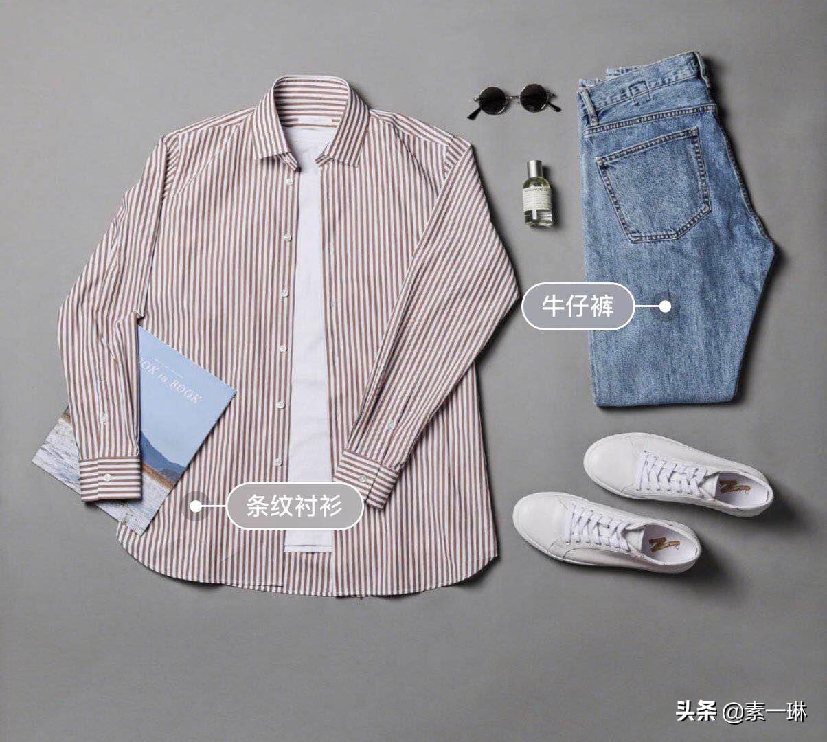 5.休闲条纹衬衫+牛仔裤