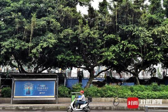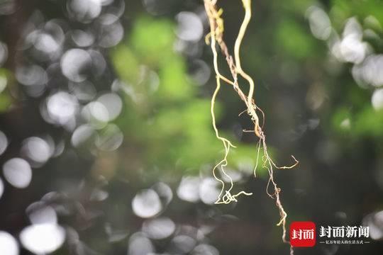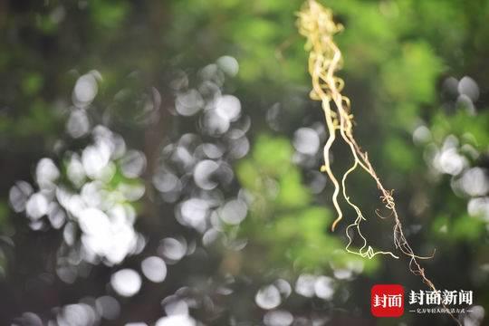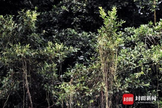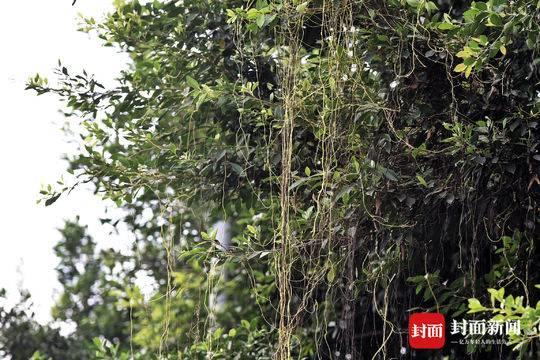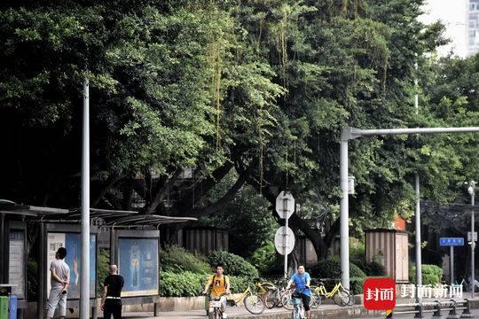 8月25日, 成都市玉林北街几株粗壮的小叶榕树上挂满了金黄色的植物细丝,引人侧目。一根根丝状黄色植物,缠绕在枝叶间,有的随风摆动,看起来很是妖娆。