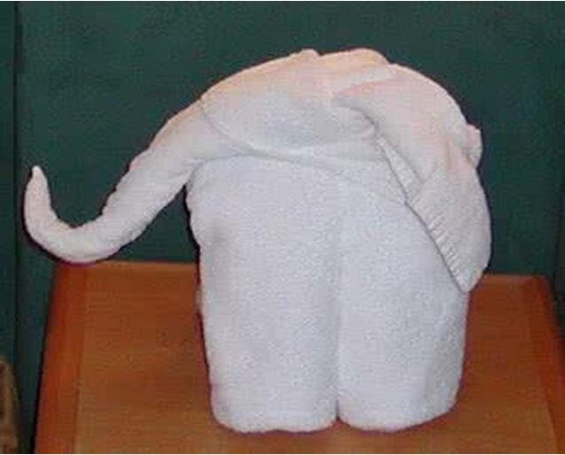 5,对折。对折后,四条柱子应该在外面。这是大象的身体和腿。