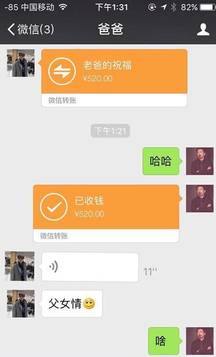 郑爽老爸给女儿发红包