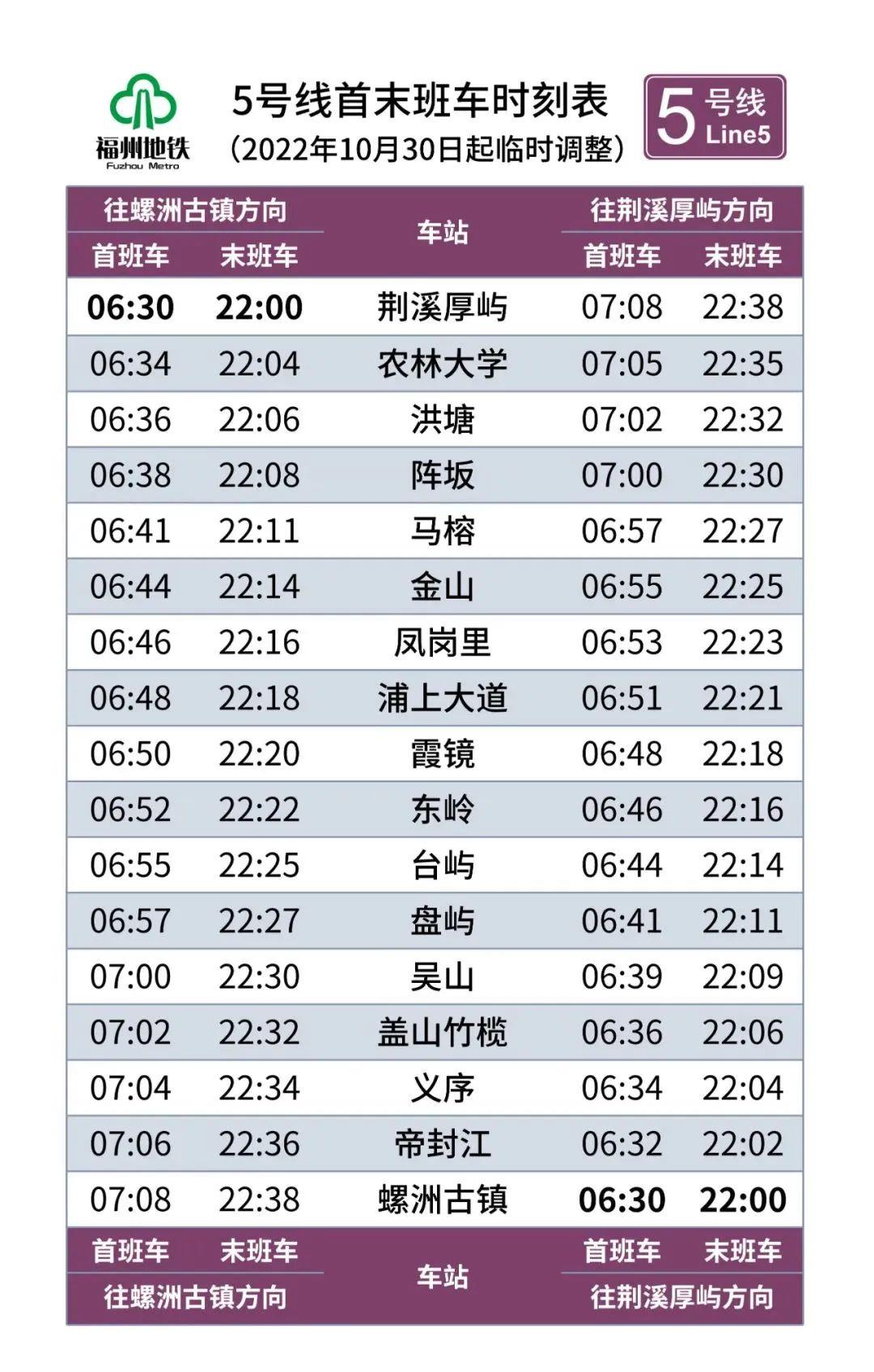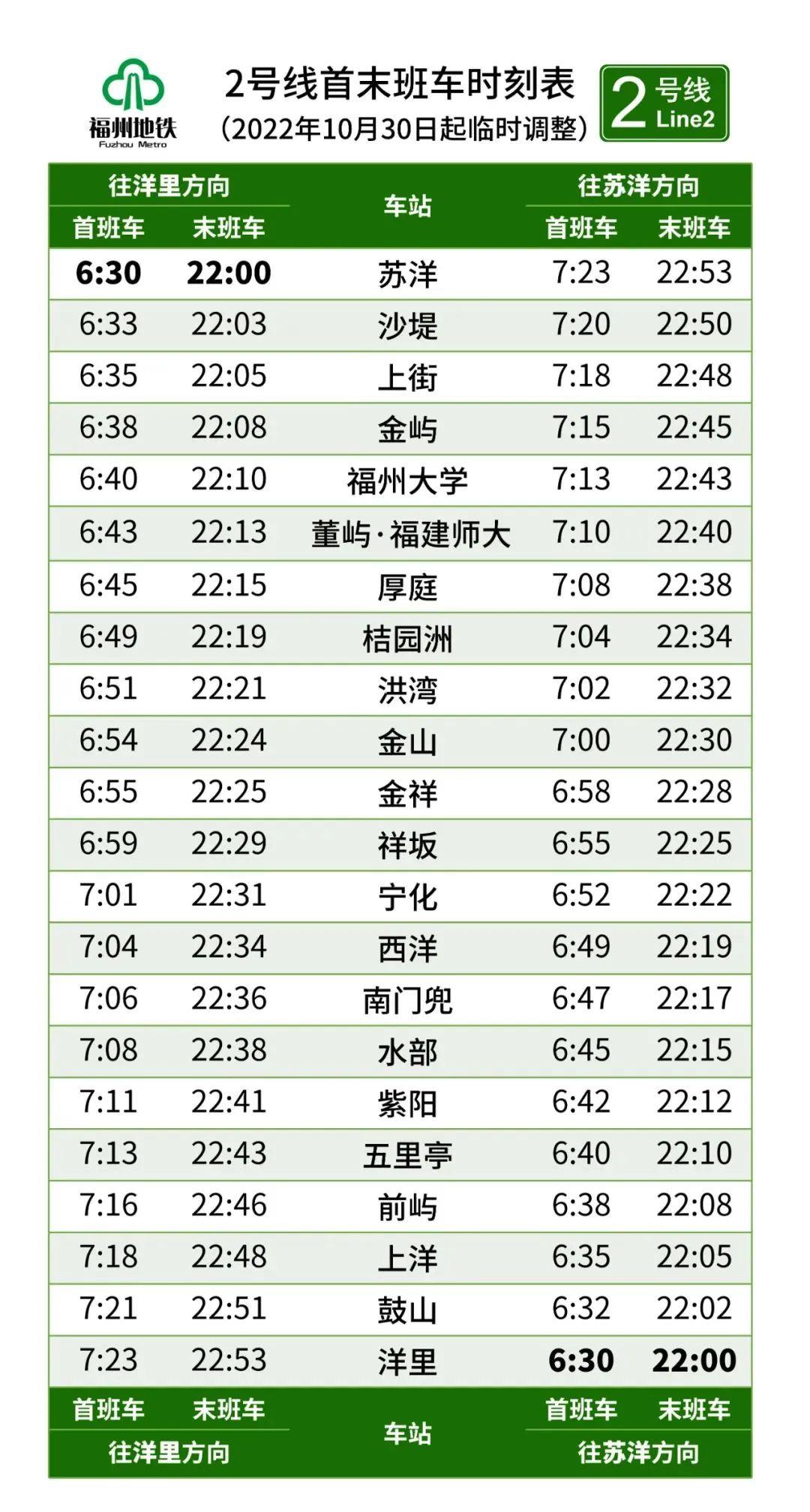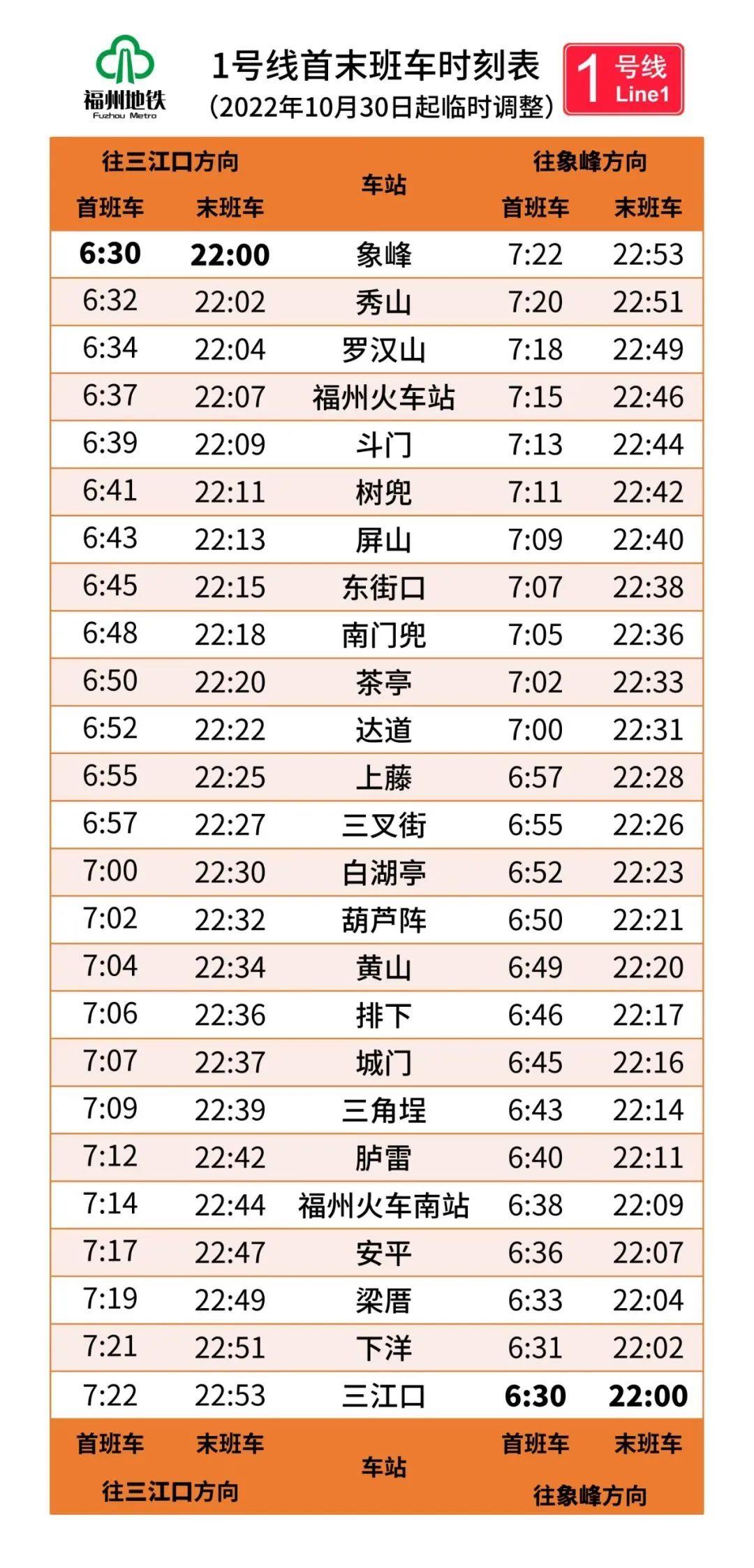 因疫情防控需要,自2022年10月30日起,福州地铁全线网运营服务做如下调整: