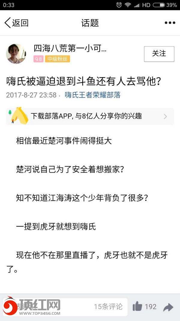 现在已经有很多嗨氏的粉丝卸载了虎牙,下载斗鱼陪着嗨氏了,称"保护我方江海涛"。