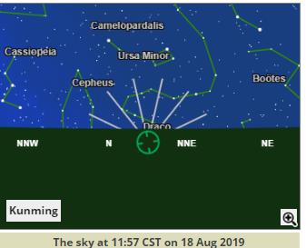 在昆明,流星雨的辐射点整晚都位于地平线以上,这意味着整个夜晚时段都能观察到流星雨。流星雨大约会在22:00呈现最佳的观赏景象,当时其辐射点在天空中的位置最高。