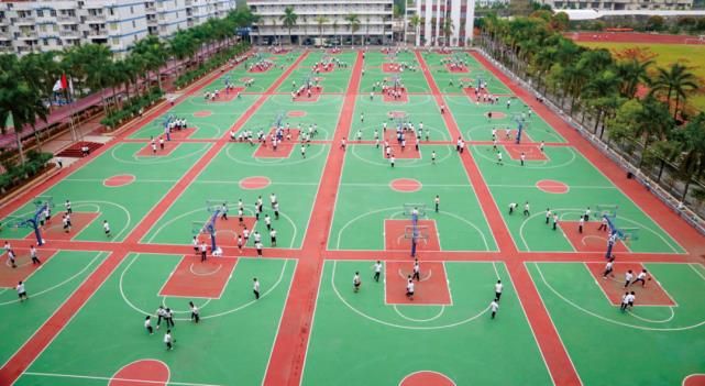 高标准的体育馆、三十九个篮球场、两个七人足球场和田径场跑道、还有可容纳千余人同时就餐的上下五层的学生餐厅以及高档次、舒适的学生宿舍无不让人竖起大拇指!