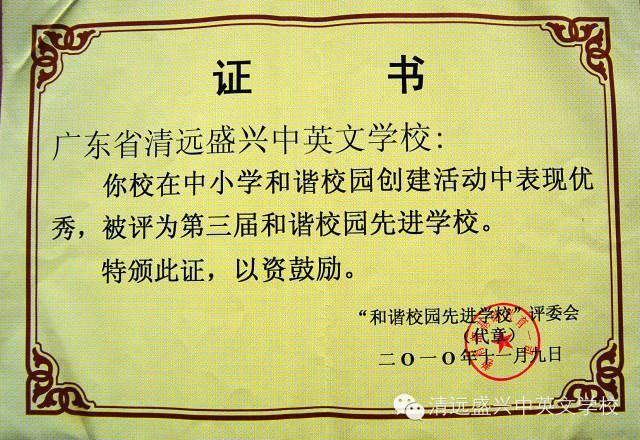 令人瞩目的教育教学成果,在社会上树立了良好的口碑,得到了国家、省、市各级主管部门的高度评价,学校先后被授予:中国著名品牌学校、全国AAA级民办放心学校、全国特色建设先进学校、全国和谐校园先进学校、全国办学特色示范学校、广东省首批安全文明校园、广东省首批书香校园、广东省食品安全管理示范单位、广东省社会组织先进党支部等荣誉称号。