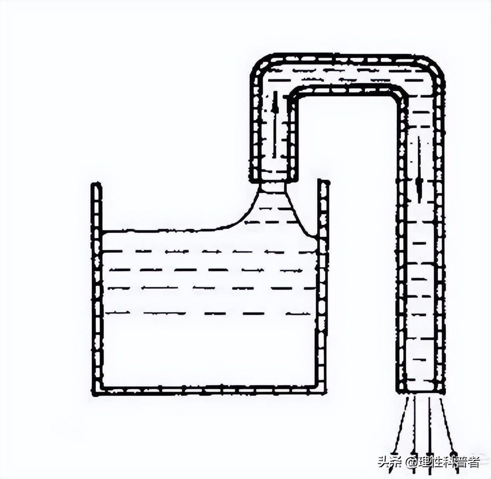 虹吸现象是人类一种古老的发明,很早就有奇特的虹吸管记载。虹吸现象并不完全由大气压力产生的,还有液体的压力差(重力不平衡)、分子间作用力等原因引起的。虹吸现象可以在真空中发生,这时,使液体上升的力量就是液体分子间的作用力。在发生虹吸现象时,虹吸管一定要装满水,否则,气泡可以使虹吸现象产生中断,虹吸不能持续进行。