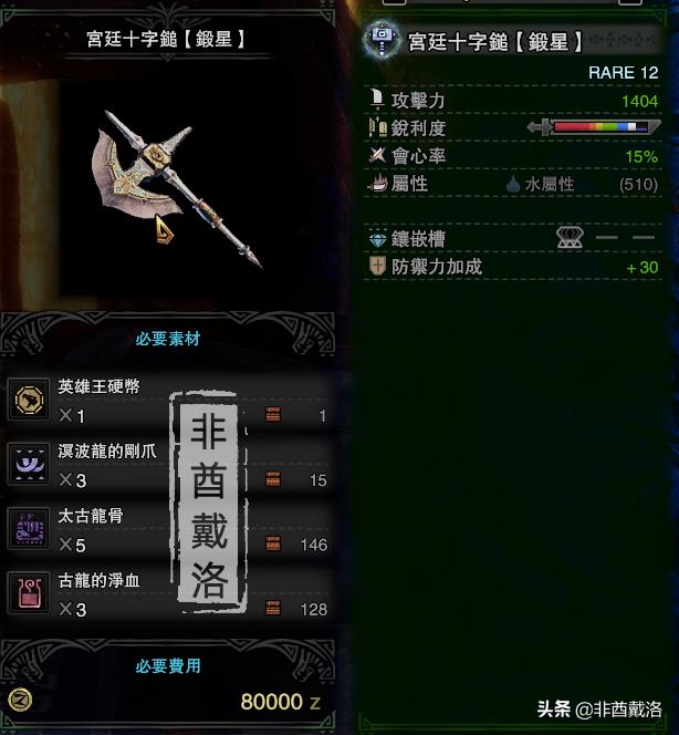 奖励:可产出【祭典票】,制作宫殿系列武器的前置形态(一共需要2张票),宫殿系列全武器都有,一共14把,且都能进行一次强化,强化需要素材如下。