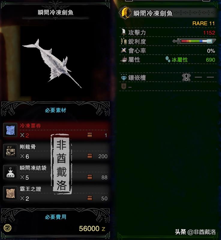 奖励:可产出【冷冻票券】,制作以下这把大剑,包括制作与强化一共需要5张票。
