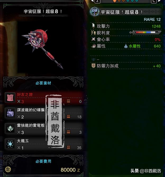 奖励:可产出用餐地区票【肉】,制作以下这把大锤,包括制作与强化一共需要3张票。