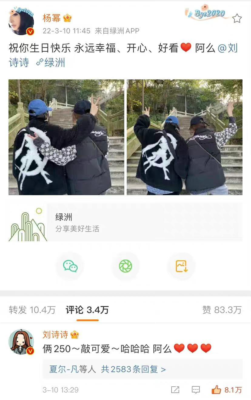 杨幂迎来36岁生日,娇妻刘诗诗送祝福,同框合照太美