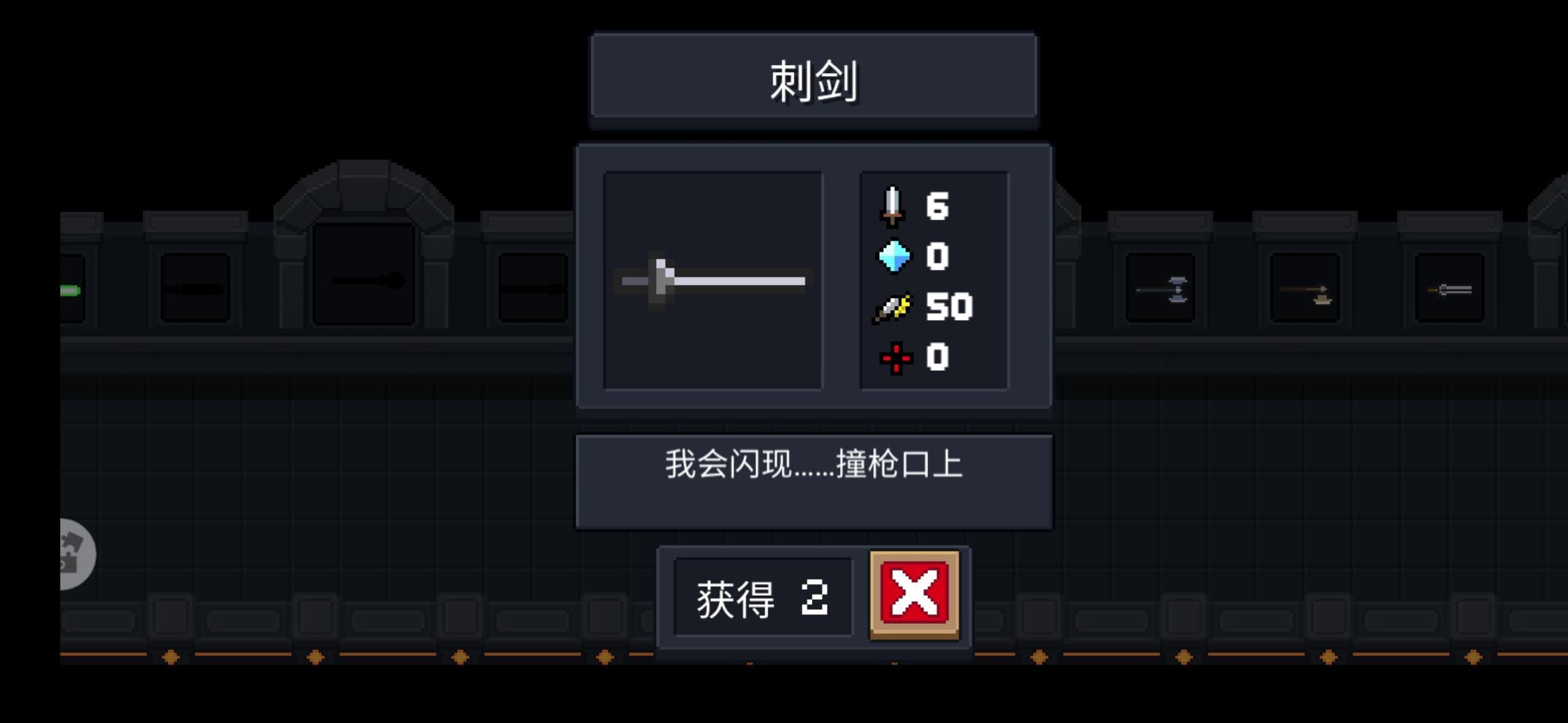 大部分近战武器是不需要耗蓝的,而且近战武器可以阻挡子弹。近战武器有突刺形的,图中刺剑就是,可以带来一段位移,快速接近敌人。