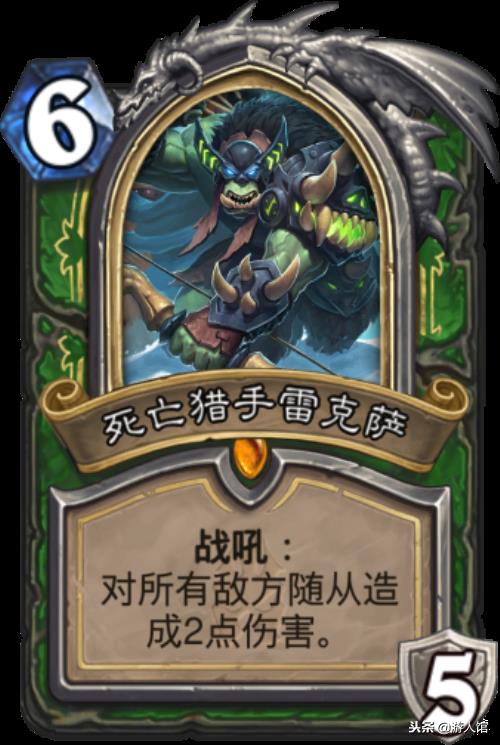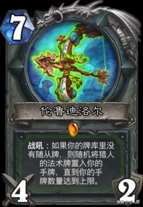 猎人的这把橙武也是创造了一种新的套路,那就是全法术卡组,本来因为这类型的套路应该是法师,牧师或者术士的,哪知道官方给了猎人,加上现在祖尔金的存在,法术猎的强度也到了历史的最高点,这张锦上添花的卡必不可少。