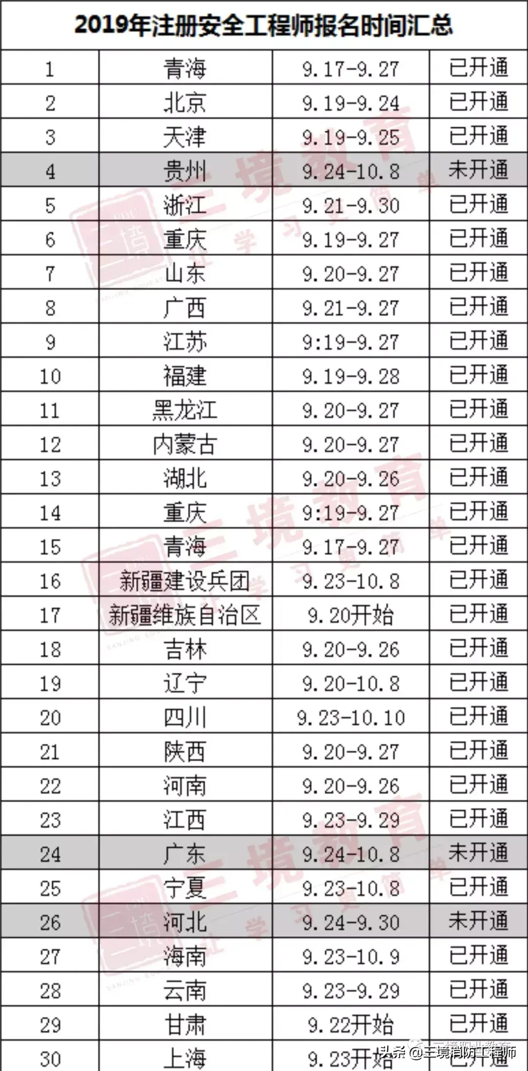 19年注册安全工程师报名时间汇总,共29省,错过又要在等一年