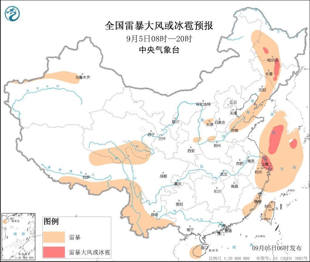 随着台风转向东北,华东地区的降水趋于减弱。预计5日夜间至6日,北上的“轩岚诺”将与东北冷涡共同影响东北地区,吉林东部、黑龙江东部等地有中到大雨,局地暴雨。另外,受冷涡影响,5日白天,东北地区中部有对流性天气,黑龙江西南部、吉林中部等局地需警惕雷暴大风或冰雹。