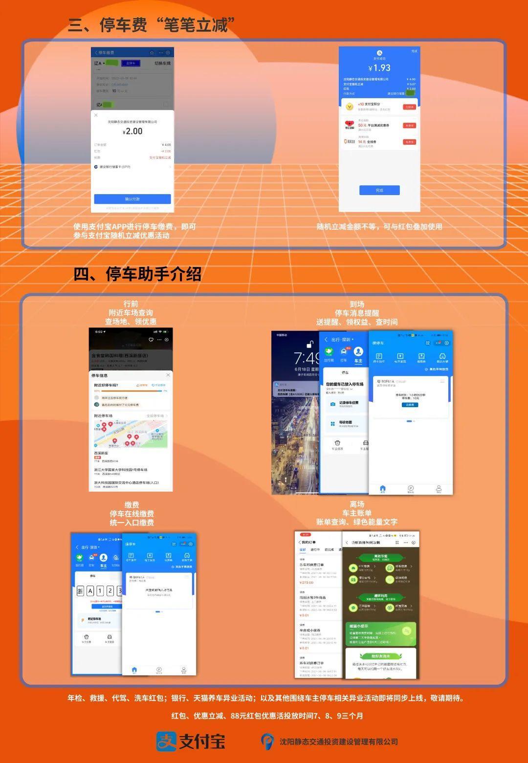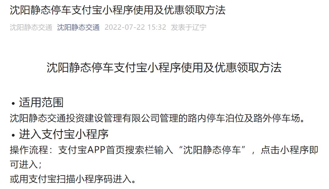 操作流程:支付宝APP首页搜索栏输入“沈阳静态停车”,点击小程序即可进入;