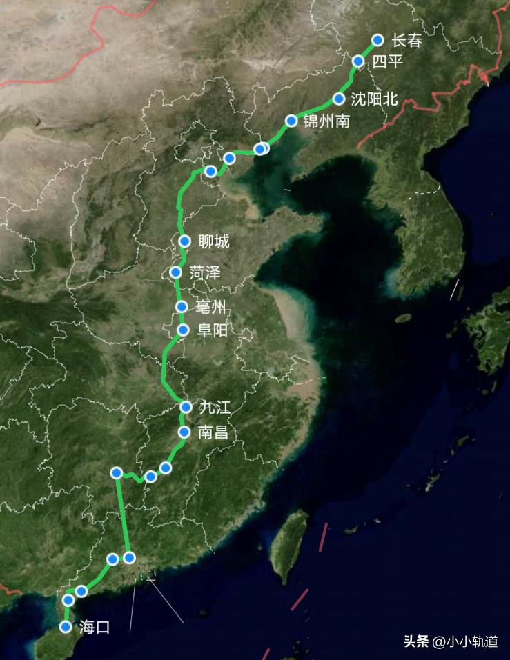 列车途经省份:吉林省、辽宁省、河北省、天津市、山东省、河南省、安徽省、湖北省、江西省、湖南省、广东省、海南省等11省1市。