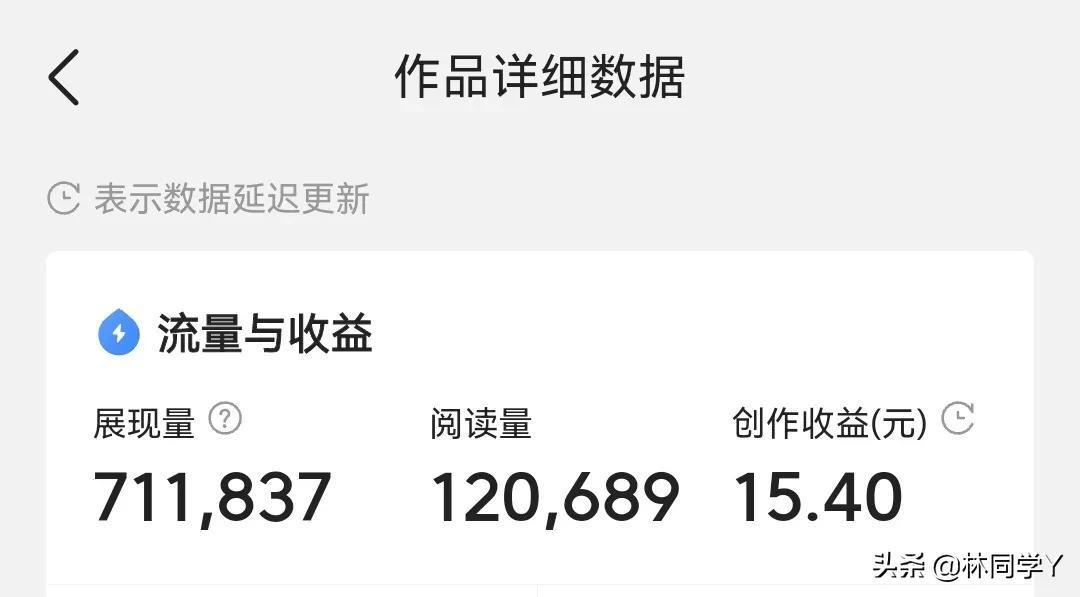 今天,我完成了今日头条100万总阅读(播放量),那么,100万总阅读(播放量),总收益是多少呢?