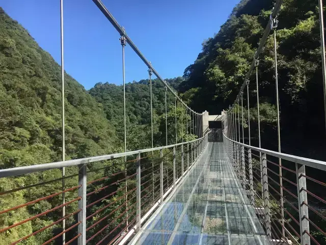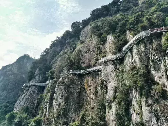 被誉为海西最长最美的“空中走廊”,蜿蜒的玻璃栈道长200米、宽1.2米,悬于风景秀丽的峡谷崖壁上。