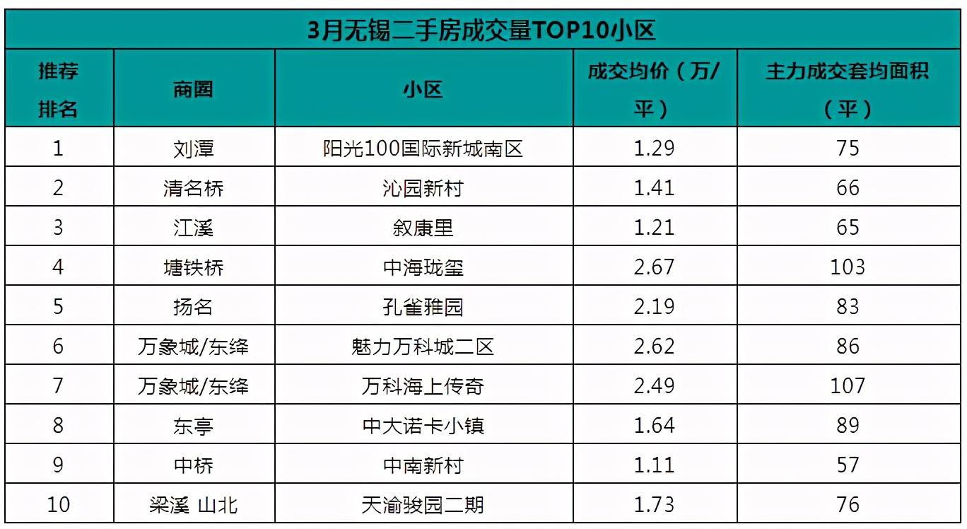 最后,我们一起来看一下无锡各大小区3月的成交情况。