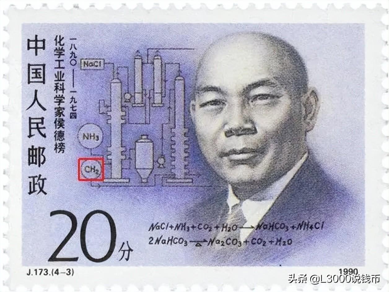 1990年发行的《中国现代科学家》邮票第2组中,也有一枚邮票存在错误,图案中的CO2(二氧化碳)错印成CH2。