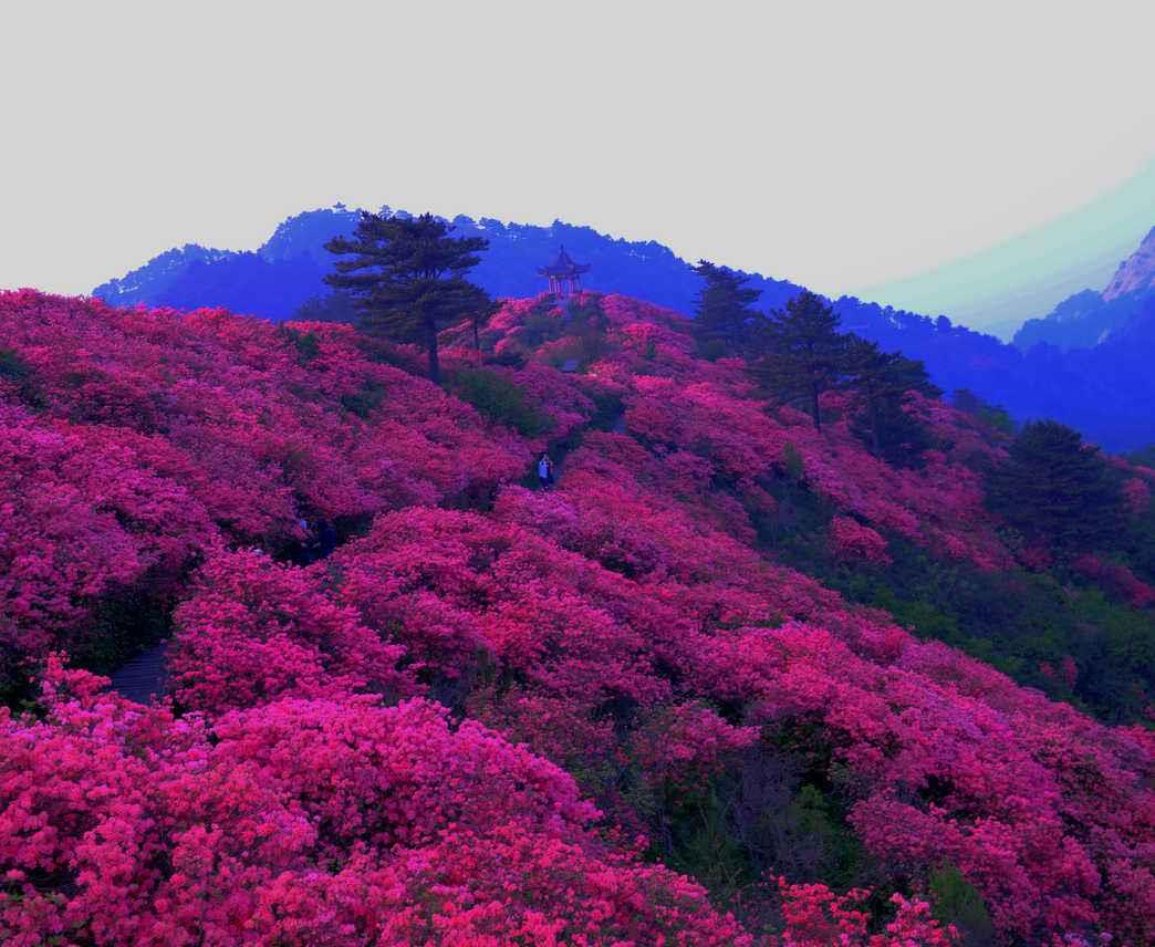 龟峰山野生杜鹃花俗名“映山红”。面积之大,年代之古老,纬度之高,海拔之高,优势度之高,保存之好,花色之美,堪称全国一绝,世界罕见。
