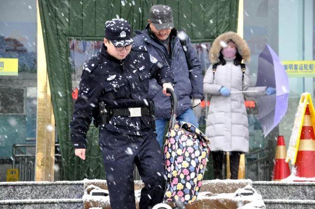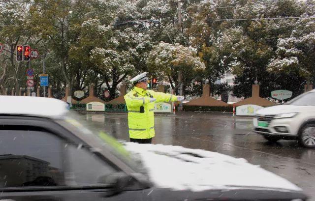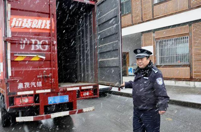 在上海的最北端,也是雪最大、气温最低的地方他们开展安检、疏导交通、提醒车辆驾驶员: