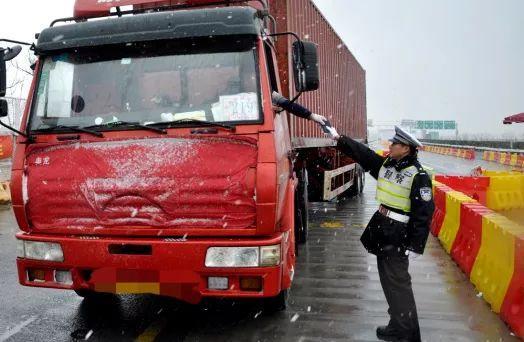 民警在G40高速道口检查车辆证件、提醒驾驶员谨慎行驶