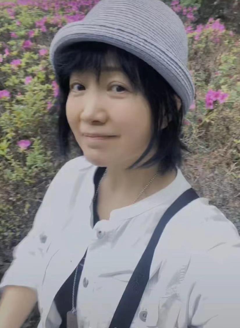 53岁斯琴格日乐暂居日本,一头短发素颜发福变化大,晒照手舞足蹈
