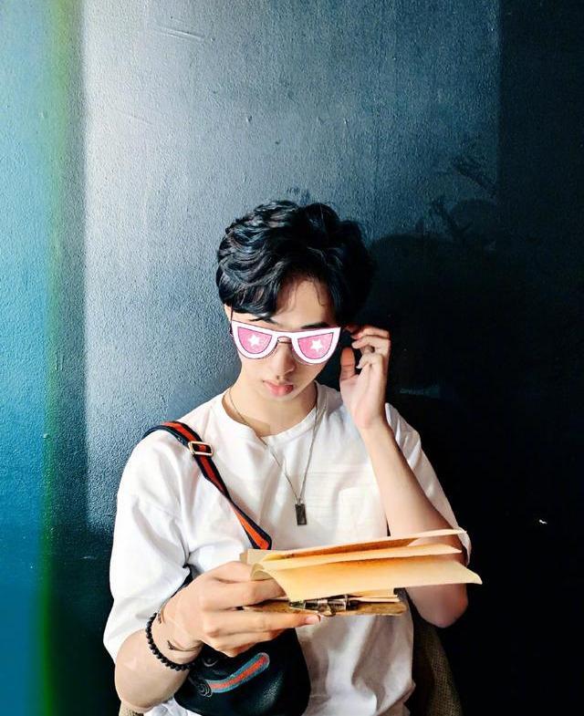 第三照片依然是一个正面照,有人说与庾澄庆很像。他的胸前挂着十字架,左手的指甲上还吐着指甲油,不少的小伙伴很好奇,他的指甲油到底是谁给他涂的呢?17岁的小男孩,身上有一股痞痞的气质,且还帅帅的,散发着荷尔蒙,这样的男孩不知道要招人多少女孩喜欢啊?