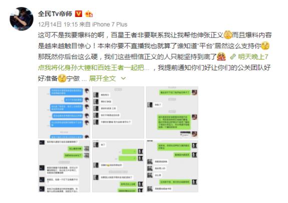 卢本伟吃鸡开挂风波一事,随着讨伐大军中加入了帝师而愈演愈烈。在卢本伟选择停播后,帝师在微博发文表示,有许多人向他提供证据实锤卢本伟,而帝师将会在直播中与其中一位微博名叫傻狐帝的人连线,现场直播实锤。