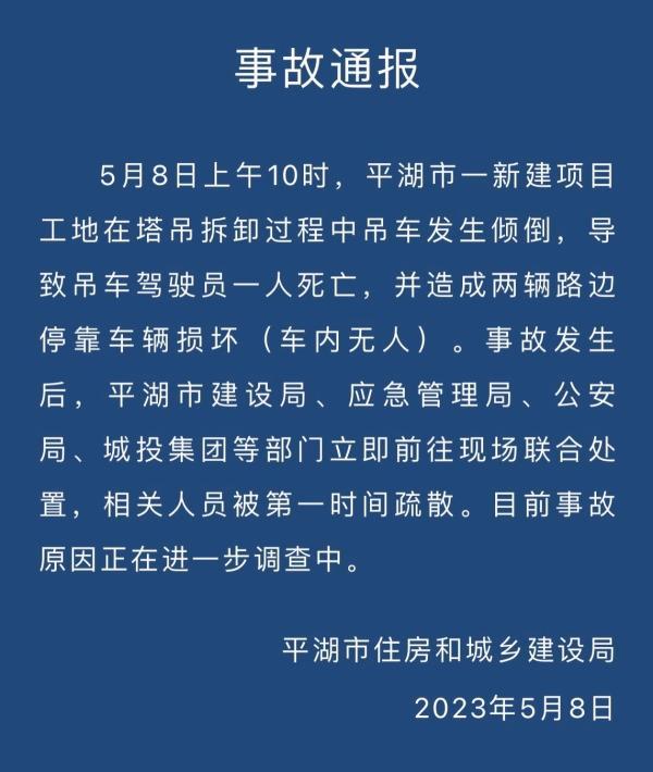 就在昨天,浙江一项目基地发生事故,致吊车驾驶员一人死亡,事发当时,现场一声巨响,塔吊从高空倒塌至地面,警察随后到现场将事故发生路段封闭!