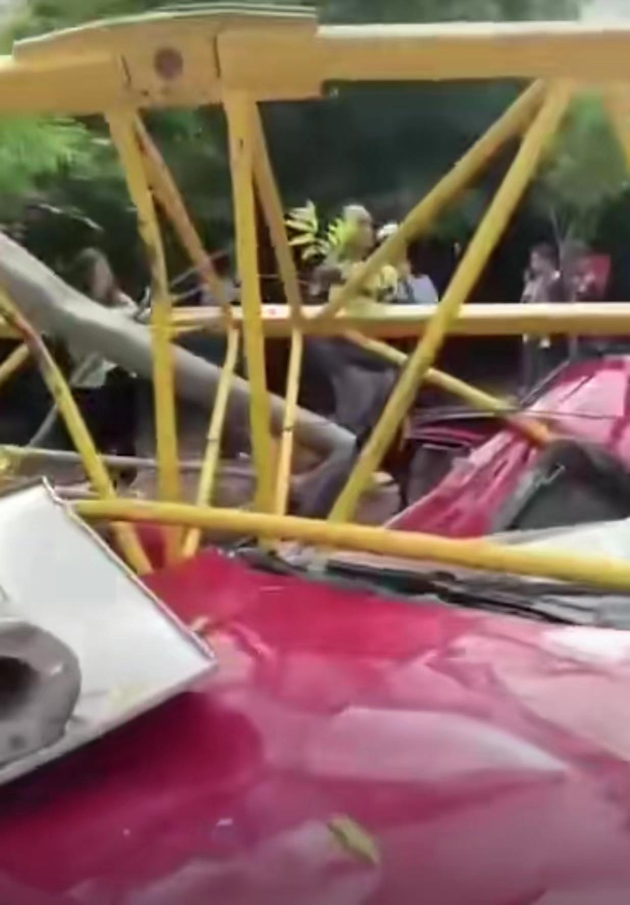 有市民拍摄了现场视频,塔吊倒塌下来,将宝马车压扁,车辆几乎报废了!事故现场还有人受伤,倒在地上,有人化险为夷,本来可能会被砸到,但因为忘记拿东西又掉头回了小区,简直是万幸!