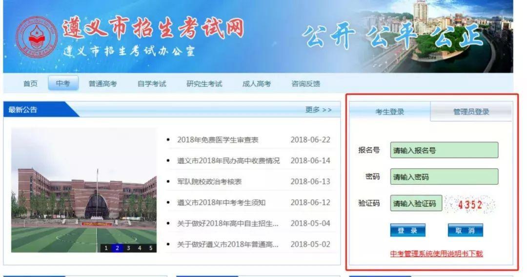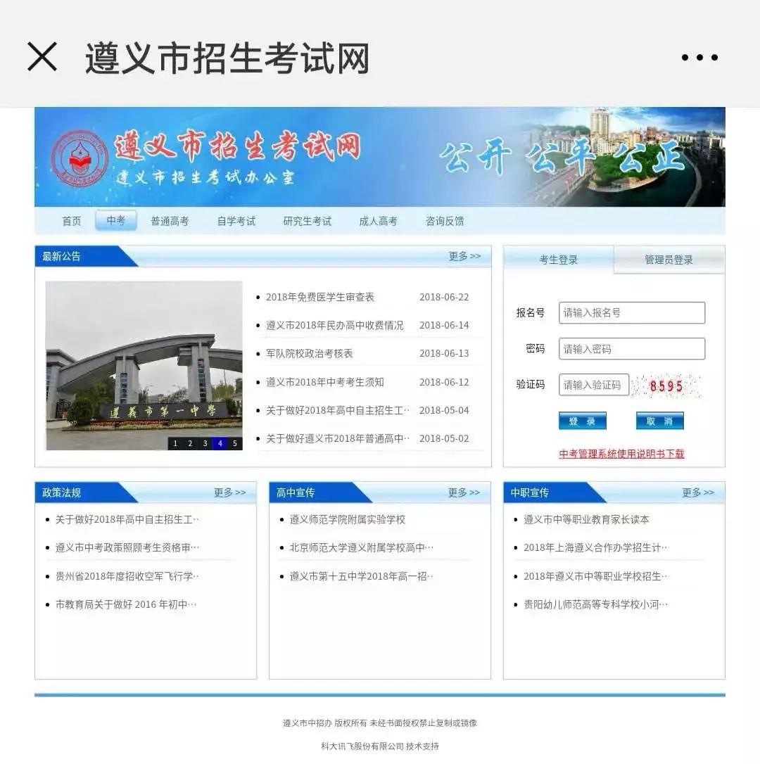 4.进入“遵义市招生考试网”后,输入相关信息登录系统进行查询。