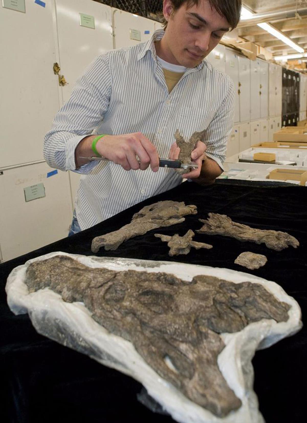 时间的指针拨回到14年前,古生物学家阿里克斯在一个来自塞雷洪煤矿、标注为“鳄鱼”的化石箱子中发现了一块巨大的脊椎骨化石,他一眼就发现这根本不是鳄鱼身上的骨头。