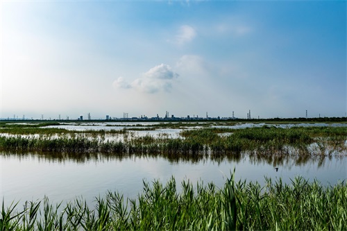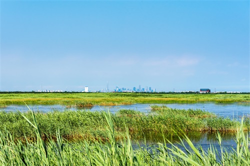 远眺芦苇荡,可以看到滨海新区的高楼大厦和都市美景 /摄影:吾设吾影