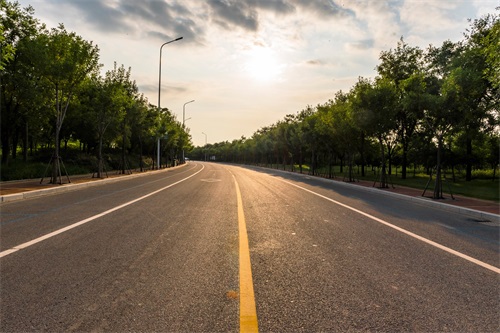 公园里的马路,在夕阳的照耀下,金光闪闪 /摄影:吾设吾影