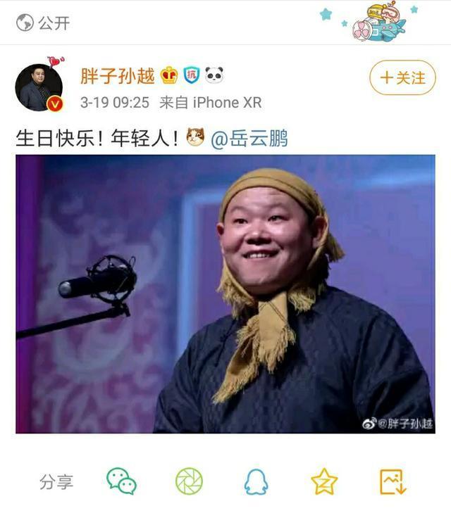 与小白的直接不同,由于昨天的乌龙,小岳今天迟迟没有发声,还是老搭档了解自己,孙越孙老师在社交平台上传岳云鹏照片,并用小岳岳喜欢的语言祝他这个年轻人生日快乐。