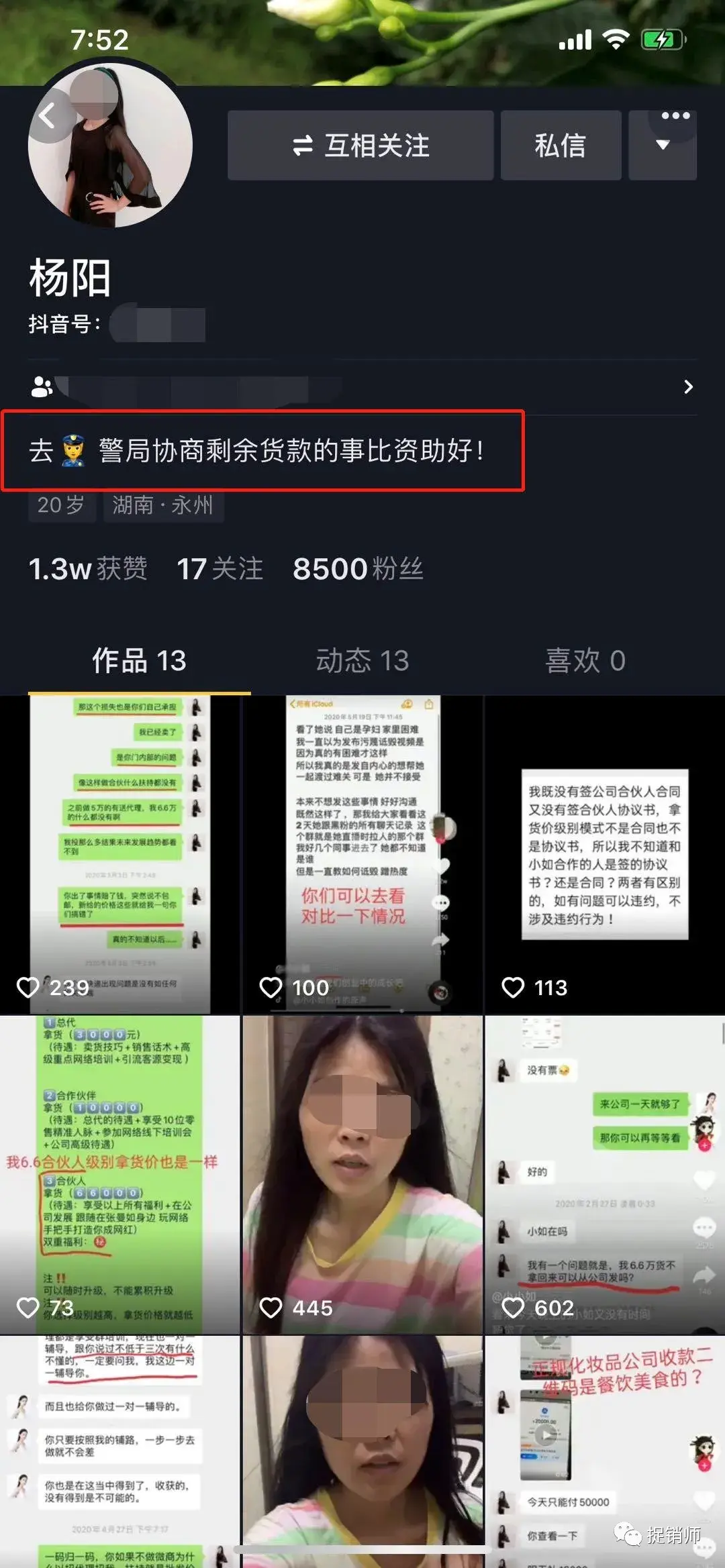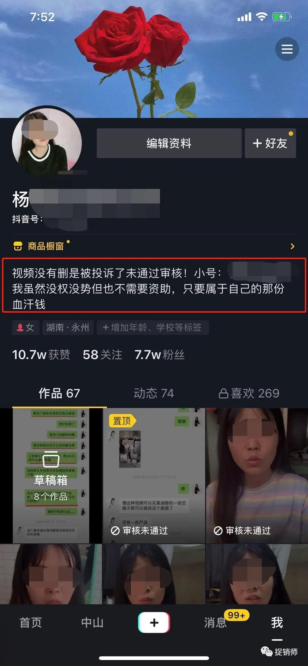 因屡遭张曼如及其团队恶意投诉而遭到封禁的杨女士抖音账号