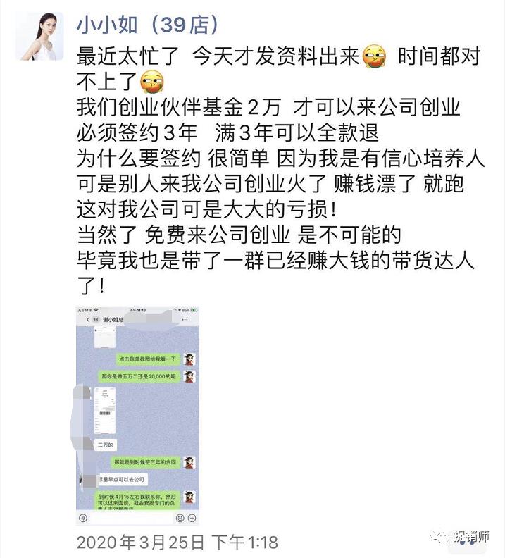 据杨女士介绍,开始刷过张曼如的视频,后来就加她抖音看完了她所有视频内容,觉得她很励志还有很触动人心一个小女孩创业成功的记录就加了她主页上微信,跟她了解了创业。疫情原因家庭变故的原因导致我太着急想给家人好的生活,就付款6.6万元成为其合伙人级别。