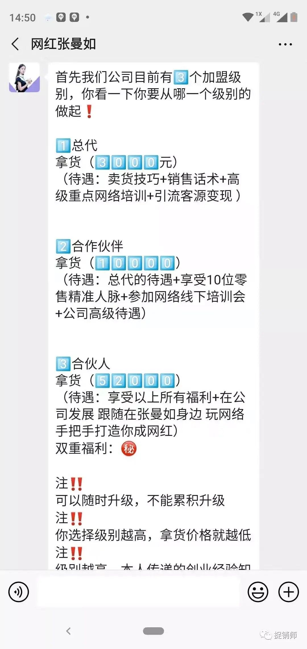 其实,这个早前被捉销师曝光过的“市场营销新模式”是这样的。(2019年11月1日曝光文章《诗如雅和美迪智,“网红”张曼如终于变成令人生厌的样子》,点击标题即可浏览)