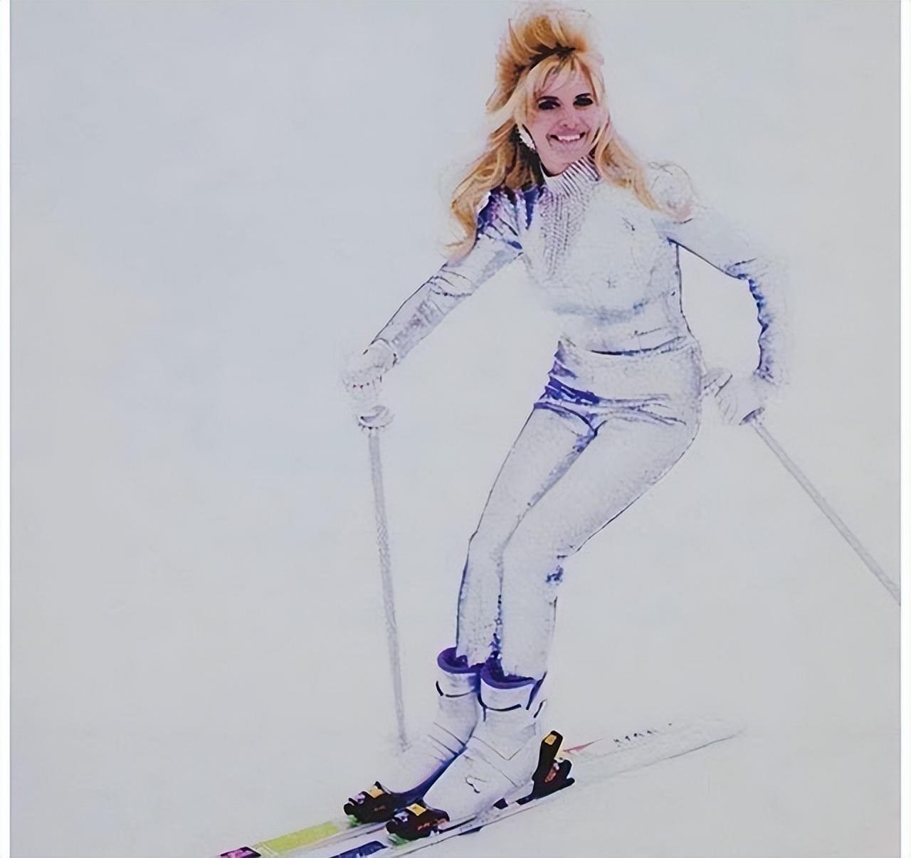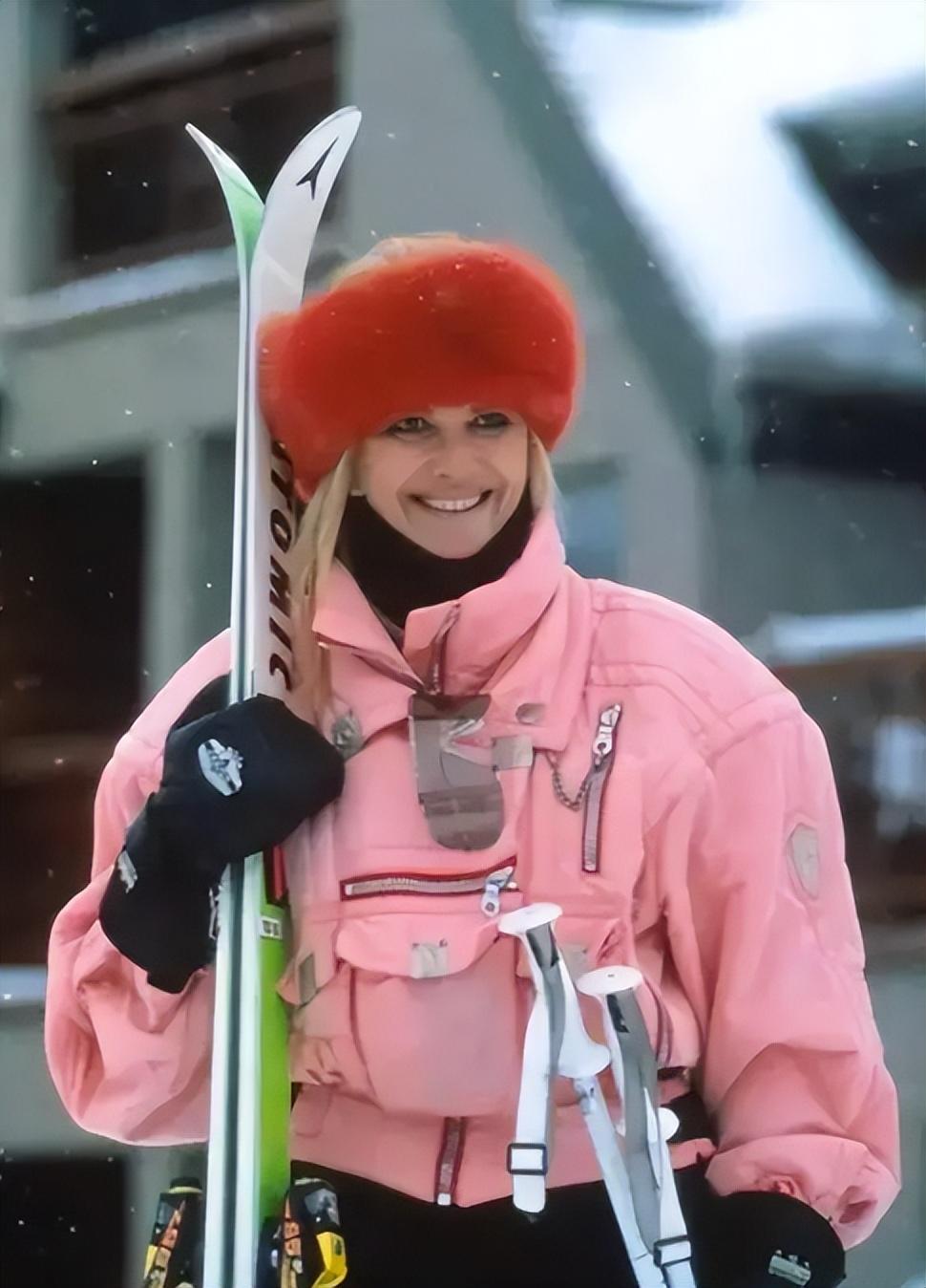 照片上面的她,穿着一身银色的滑雪服,在雪里面乘风破浪,一头金色长发披散而下,看起来如此的快乐。