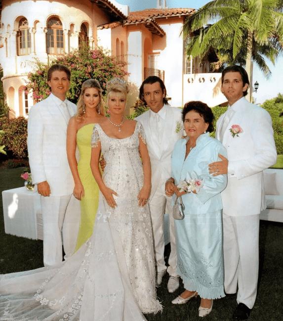 伊凡娜的老母亲则是穿着一身白色的修身礼服,虽然个子矮小,但看起来气色一点都不输,后来她还穿上漂亮的礼服,参加了自己女儿的第四次婚礼,看来伊凡娜这一家人,都是性情中人。