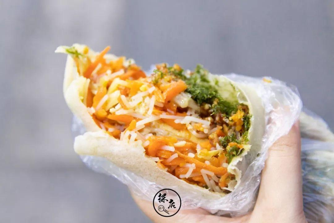 润饼卷皮薄馅多,包裹着馅料由胡萝卜、海苔等包裹在一起,口感层次丰富,天气冷了热乎乎来一口简直美哉~