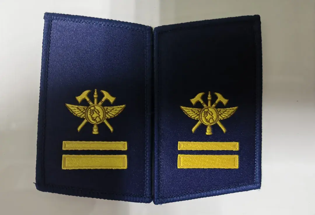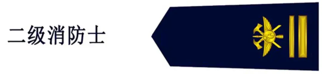 中级政府专职消防员肩章:各级消防救援队伍所属的工作时间超过2年以上的政府专职消防员、工作时间超过6年以上的消防文员。