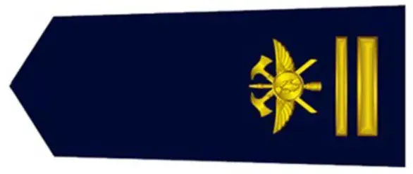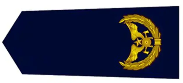 肩章分为硬肩章和软肩章二种,版面为深火焰蓝色,形状为剑形。