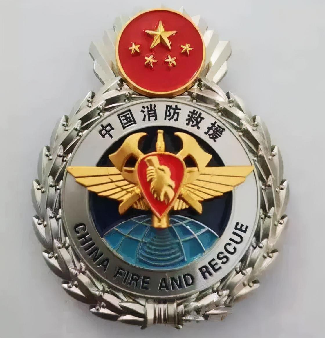 中级政府专职消防员领章:各级消防救援队伍所属的工作时间超过2年以上的专职消防员、工作时间超过6年以上的消防文员。